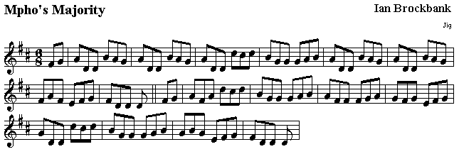 Written for my brother, Stephen, for his 21st birthday on the 22nd of June, 2000, and first danced at the ceilidh on the 17th celebrating his birthday. Stephen was born in Botswana, and given the name "Mpho" (meaning "gift") by the local people of the village; he was known by this name for the first few years of his life. His 21st birthday ceilidh was held in Teviot Student Union or the University of Edinburgh (which is actually on Bristo Square) - so it's a square dance commemorating an event in Teviot. I don't think there is a Teviot Square in Edinburgh.