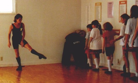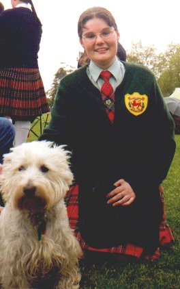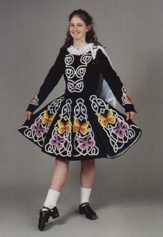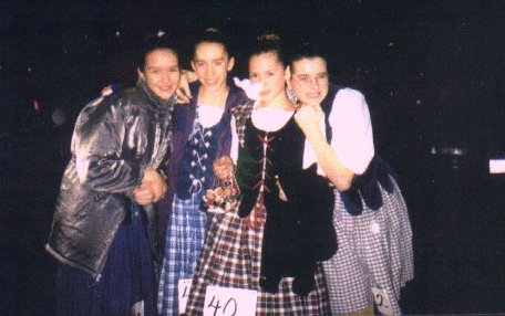 My daughter Kary (in the picture, in the Irish dance outfit I made for her) dances with the Rob Roy Highland Dancers, and has just reached premier. This picture was taken at the Rob Roy Visitor's Centre in Calendar, Scotland, on a tour in August of 1998.