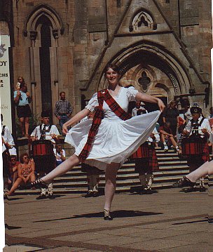 I do a lot of Scottish Country Dancing, and have just started teaching as well, having inherited the class from a friend who got a job in France at very short notice. I would like to think I am also starting to make a reputation as a dance devisor. I run the Grand Chain Scottish Dance website, and I am also the instigator and administrator of the highland-dance mailing list. My highland dance experience is limited to a couple of years tuition while at university, and the occasional Fling or Foursome and Half Tulloch as a change during an SCD performance - I would not consider myself an expert by any stretch of the imagination.